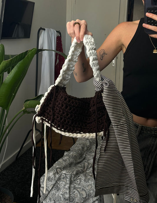 Sac baguette en crochet marron et blanc