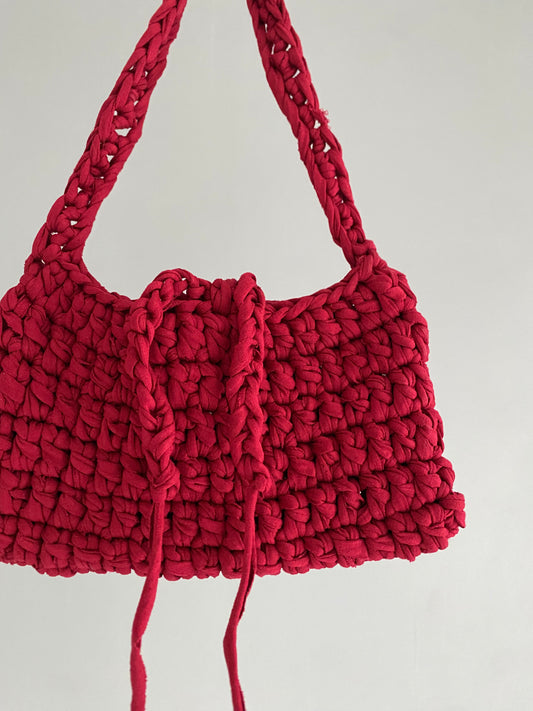 Sac triangle en crochet bordeaux