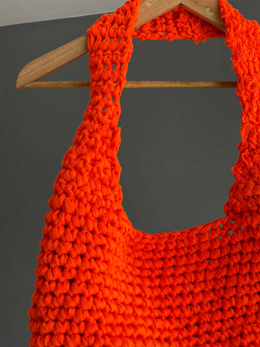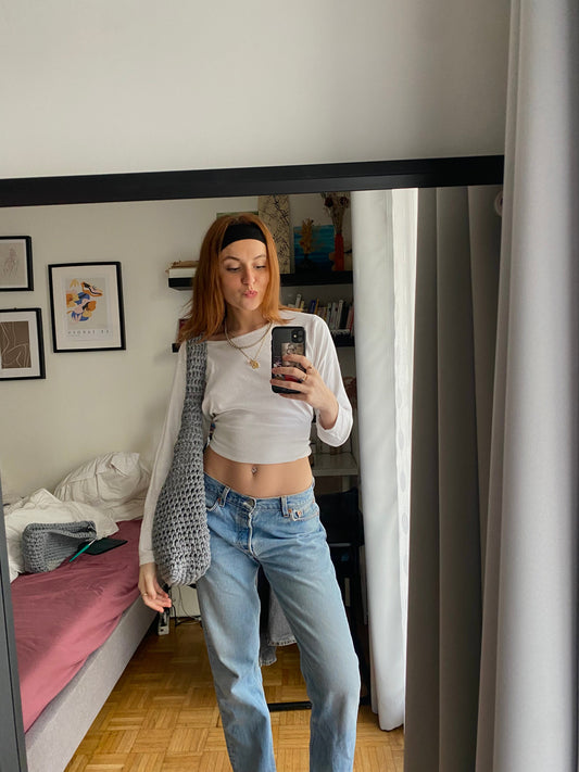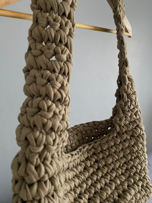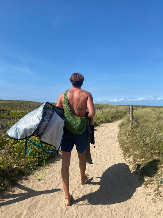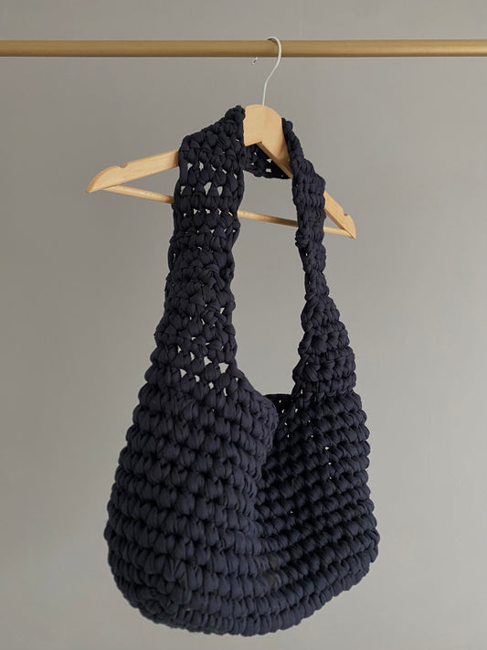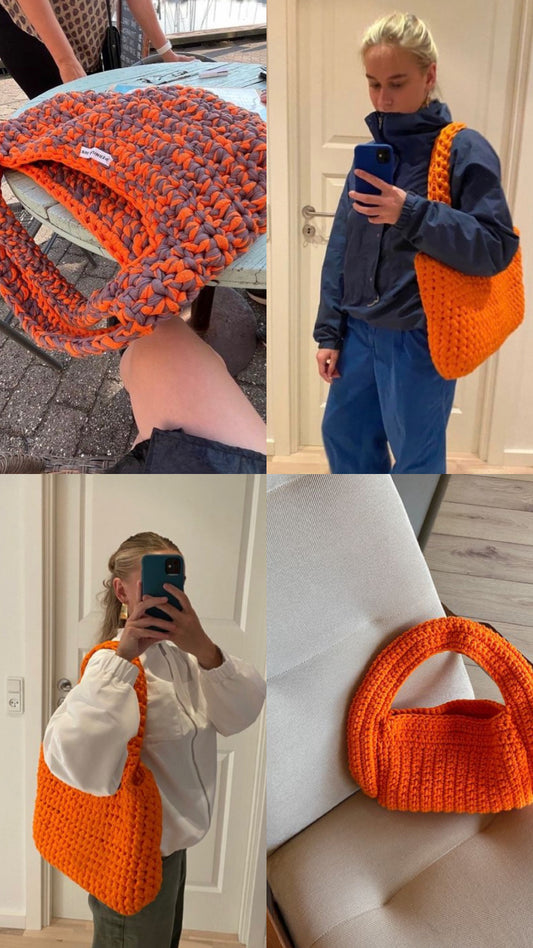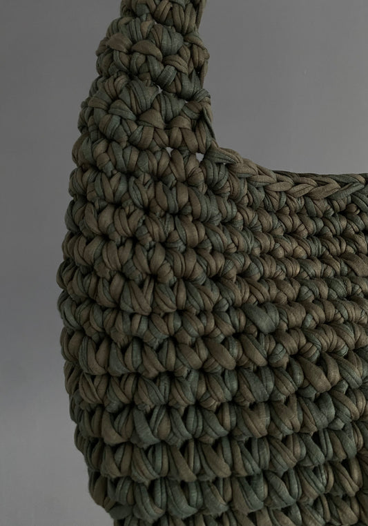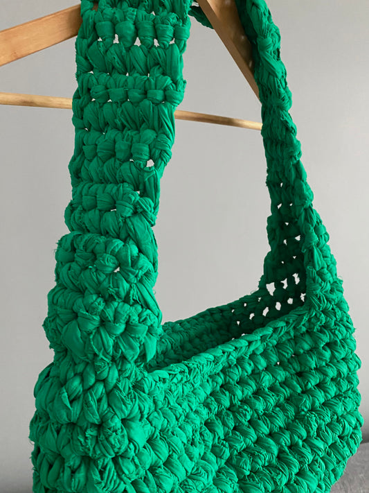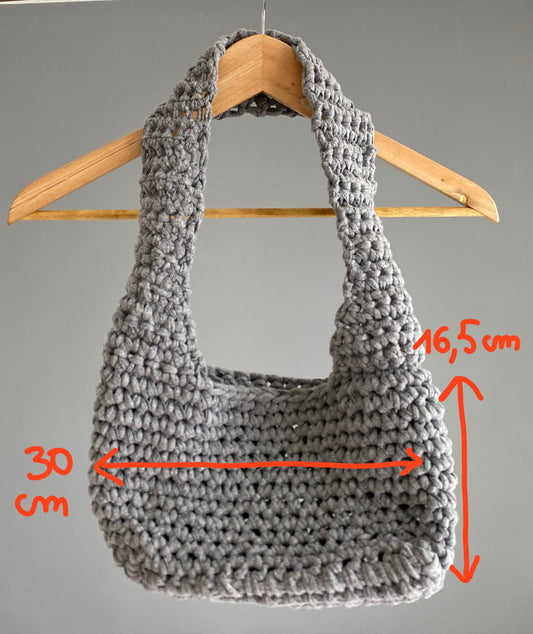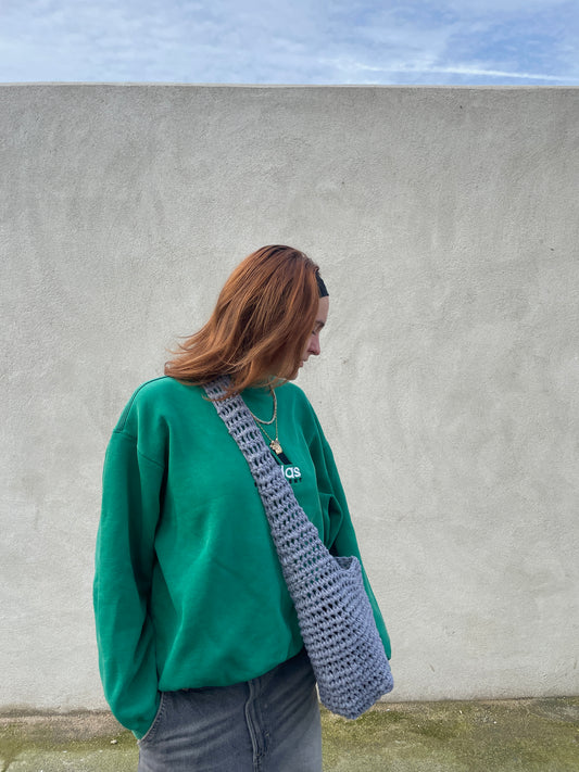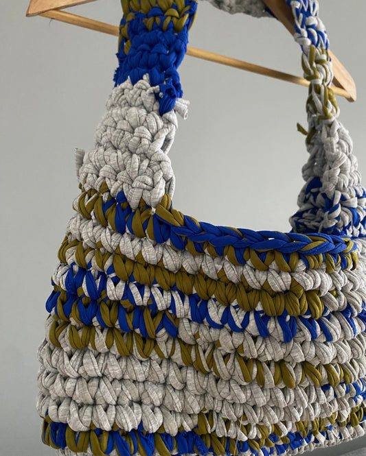Sac en crochet gris marbré bleu électrique et vert Shrek