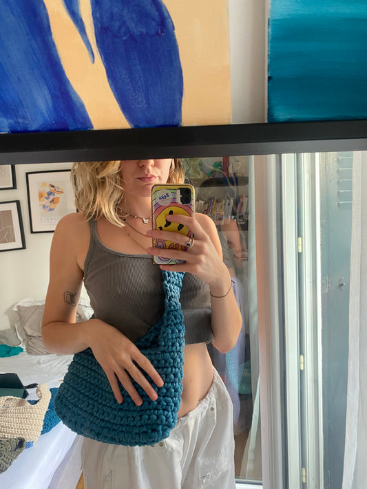 Sac en crochet marbré turquoise