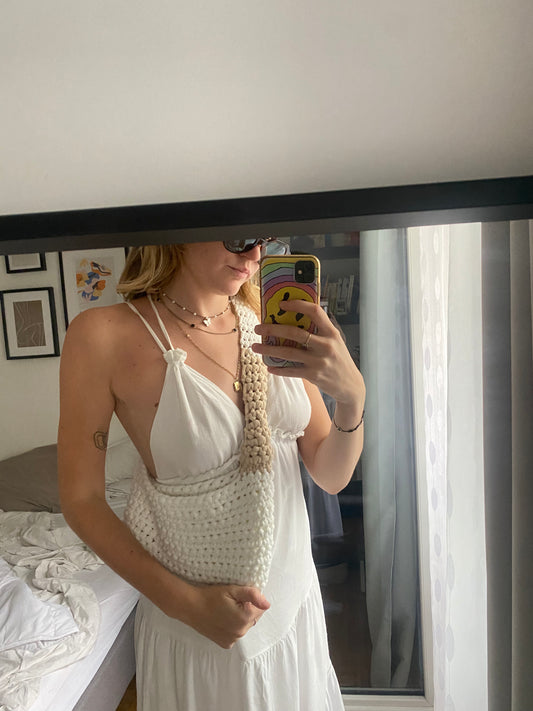 Sac en crochet blanc et beige